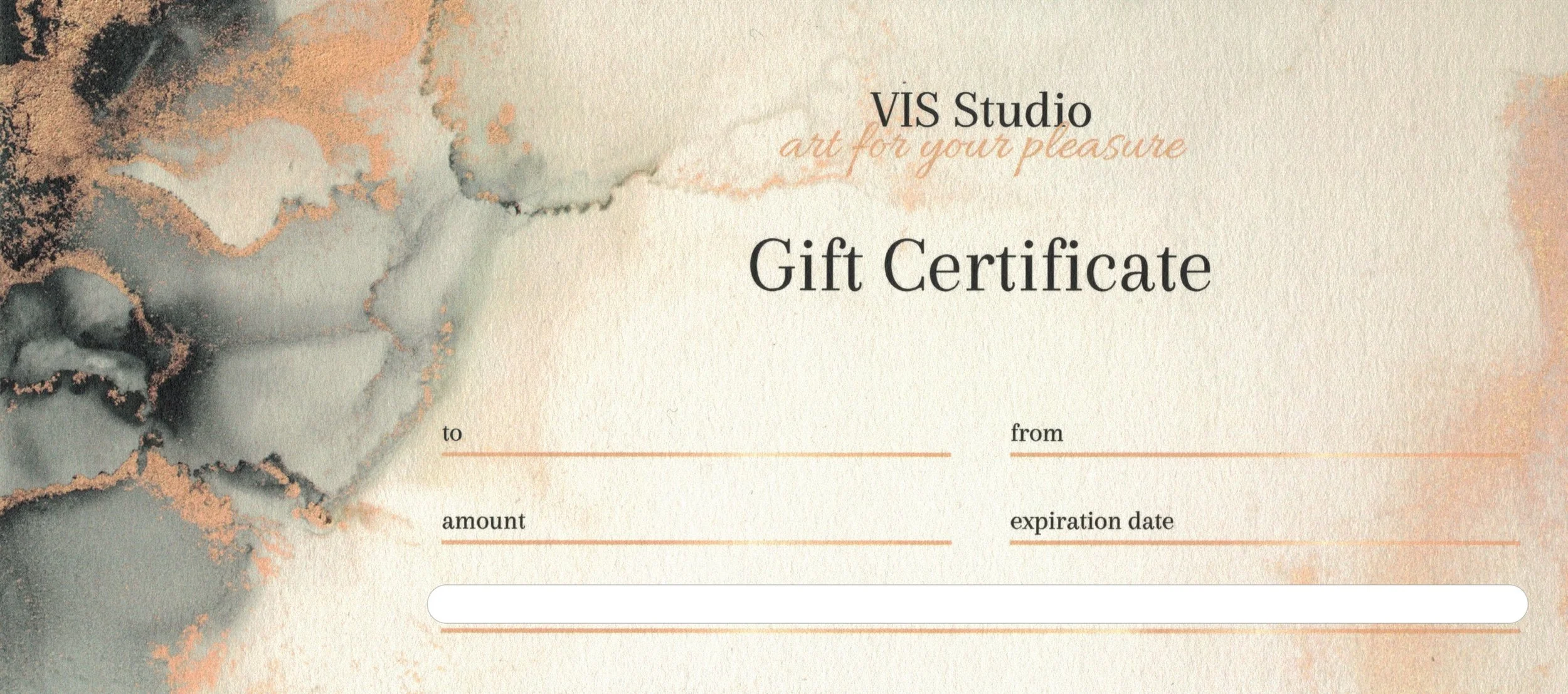 Redemption Options: When using a gift certificate, any transaction must cover applicable taxes and any remaining balance using one of the payment methods accepted at VIS Studio.